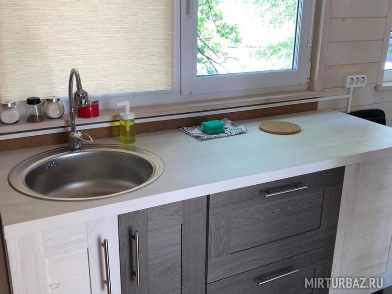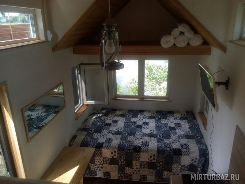 Уютный дом на двоих, в котором есть всё для комфортной жизни. Дом оснащён кухней, где есть индукционная 2-х комфорочная плита, холодильником, тв, микроволновкой, посудой, электрочайником. Кровать-тахта с хорошим матрасом ширина 143 длина 214 см.