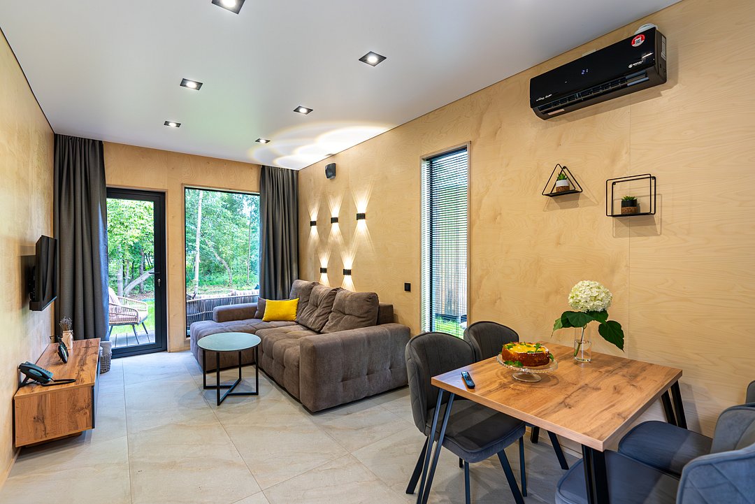 Все постройки находятся на закрытой охраняемой территории, что гарантирует комфорт и безопасность гостей. Для размещения предусмотрены разные форматы проживания: отдельные виллы с приватной террасой и дома, разделенные на три или четыре номера с индивидуальными входами. Внутри номеров – современный дизайн, сочетающий лаконичность и функциональность, есть вся необходимая мебель и техника.