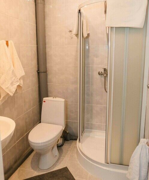 Две односпальные кровати, телевизор, холодильник, санузел, душевая кабина, wi-fi, платяной шкаф, вентилятор, площадь номера 13 м2 (в т.ч. с/у)