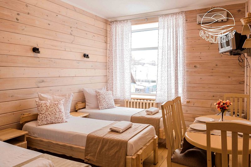 К услугам отдыхающих номера на 2–4 гостей, в интерьере которых использованы только натуральные материалы. Крепкий и сладкий сон постояльцам обеспечивают удобные кровати, застеленные льняным бельем и одеялами из теплой овечьей шерсти.