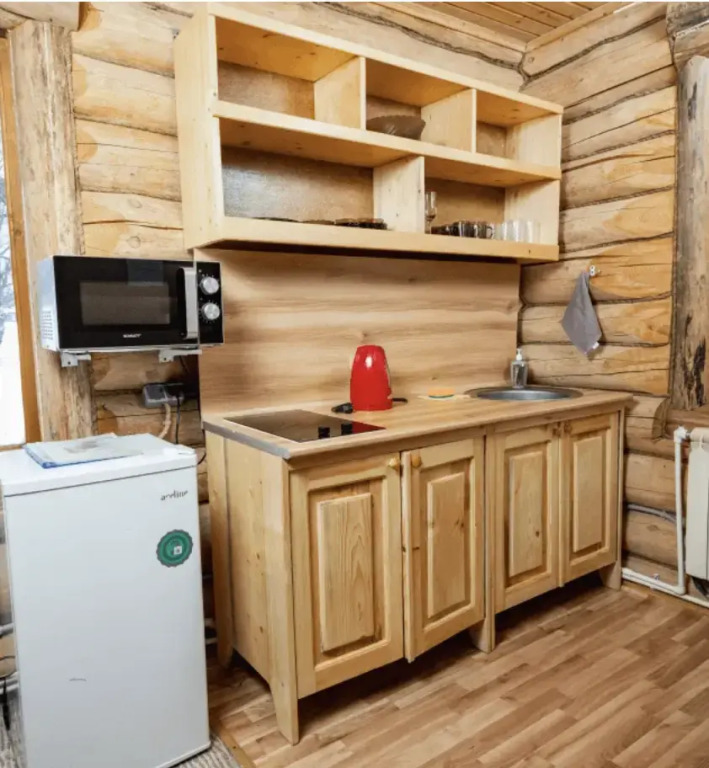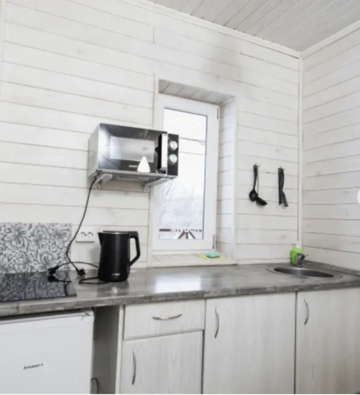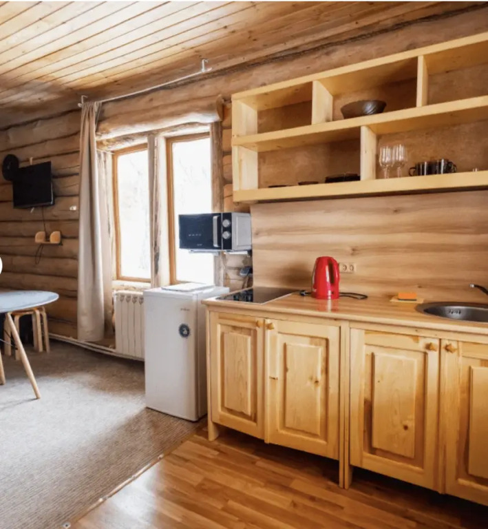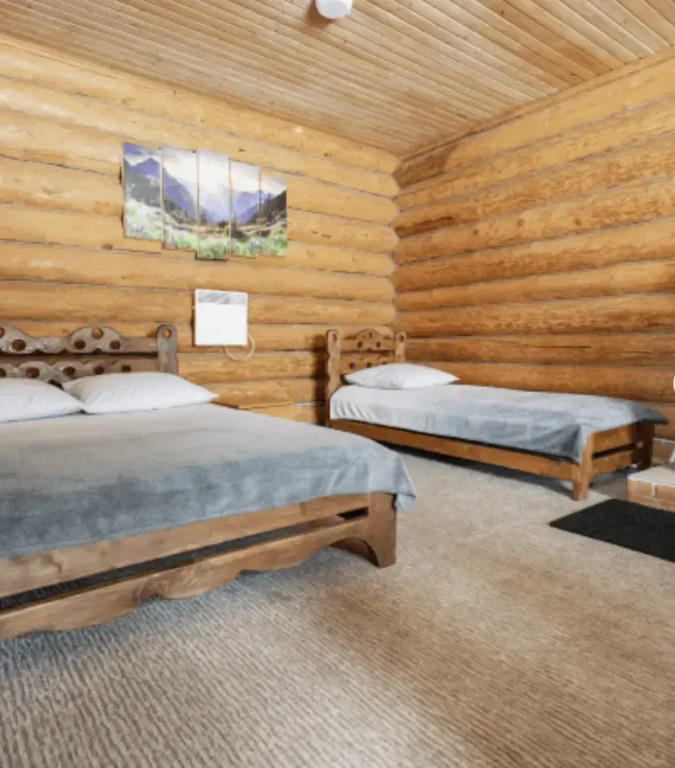 Для комфортного размещения гостей на базе построены деревянные 4-х и 9-и местные домики с уютной обстановкой, душевой кабиной, площадкой возле дома для готовки шашлыков. Большим группам предоставляется усадьба со своей кухней и набором необходимой бытовой техники.