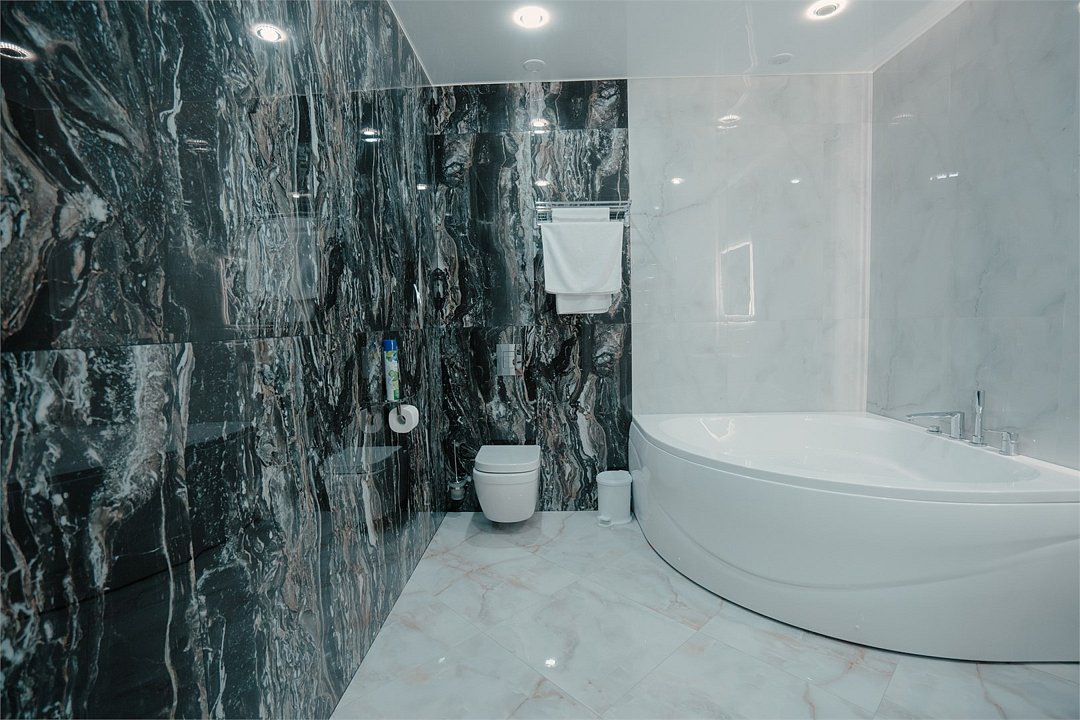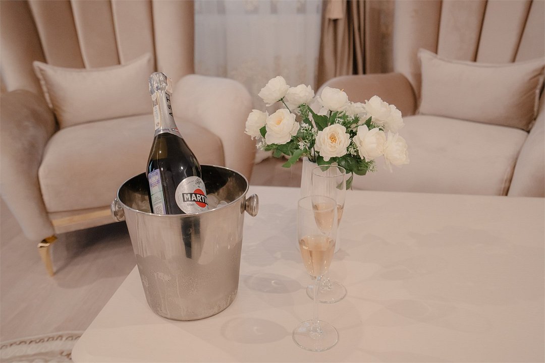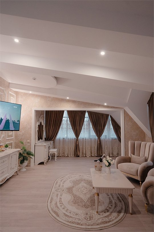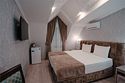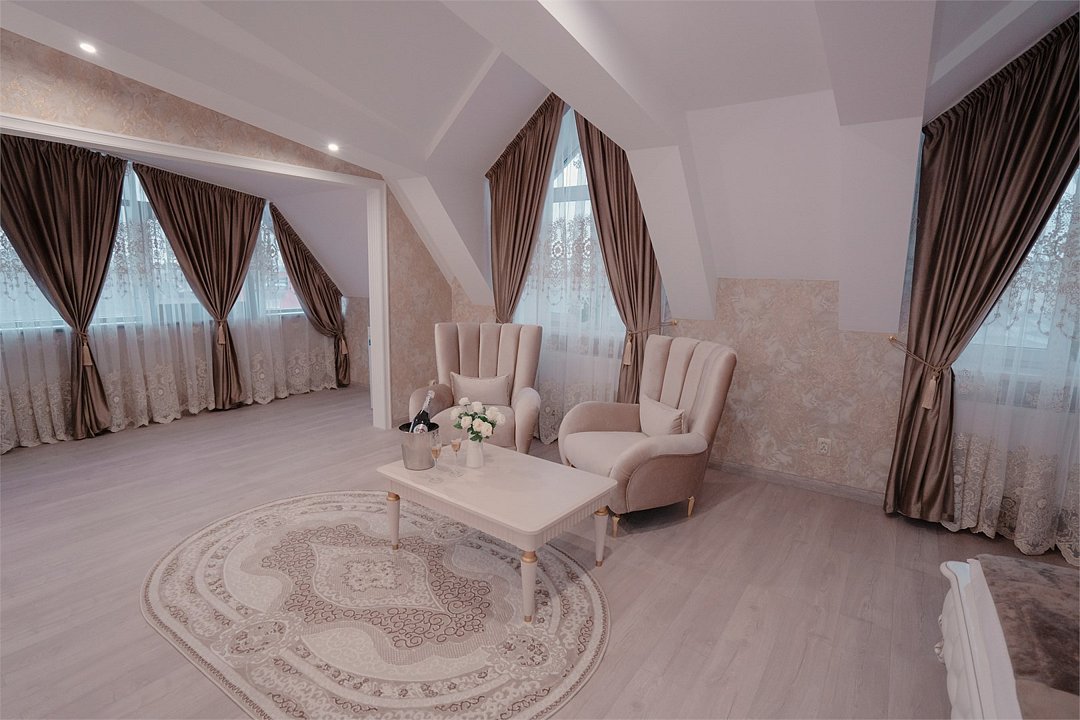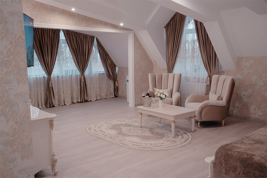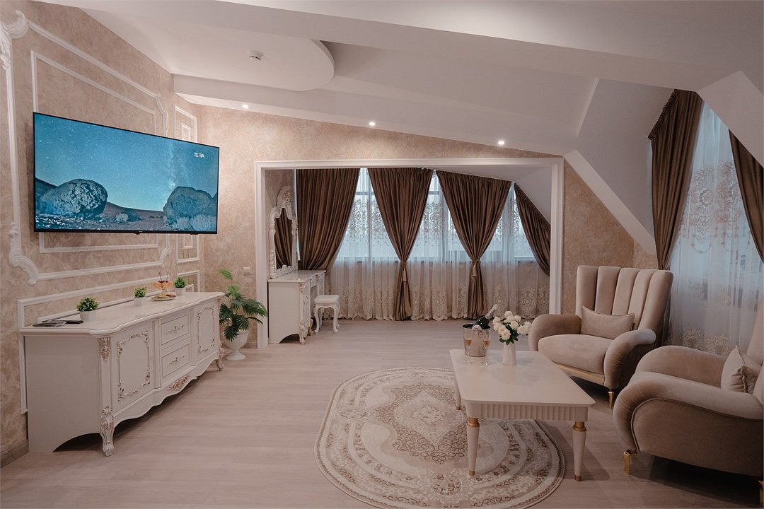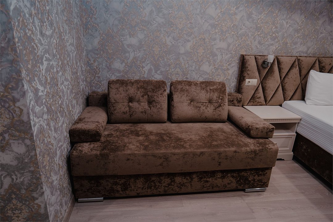 "Бизнес" однокомнатный номер повышенной комфортности. В Вашем распоряжении просторная, уютная спальня с большой удобной кроватью. Интерьер выполнен в выдержанном классическом стиле с нежными приглушенными тонами в оформлении всех зон.Услуги и удобства