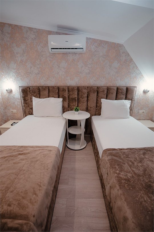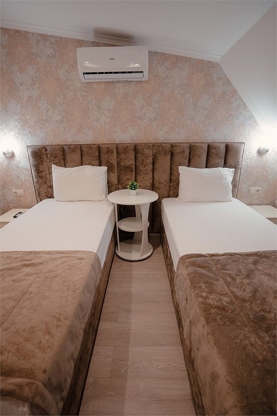 телевизор, спутниковое телевидение, кабельное телевидение, Wi-Fi, интернет, холодильник, фен, ванная комната, ванна или душевая кабина, санузел, банные полотенца, тапочки, две односпальные или большая двуспальная кровать, гладильная доска, тумбы, стулья, шкаф для одежды, вешалки, зеркало, чайный набор, обслуживание номеров, чайник, унитаз, раковина, питьевая вода, отопление, душ, ламинат, стаканы, стул, тумба, туалетные средства, сплит-система, цифровое тв, москитная сетка, гостиничная парфюмерия, телевизор со Smart TV, уборка номера, вешалки-плечики, мылоВ номере