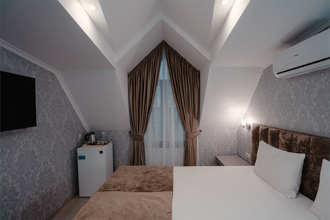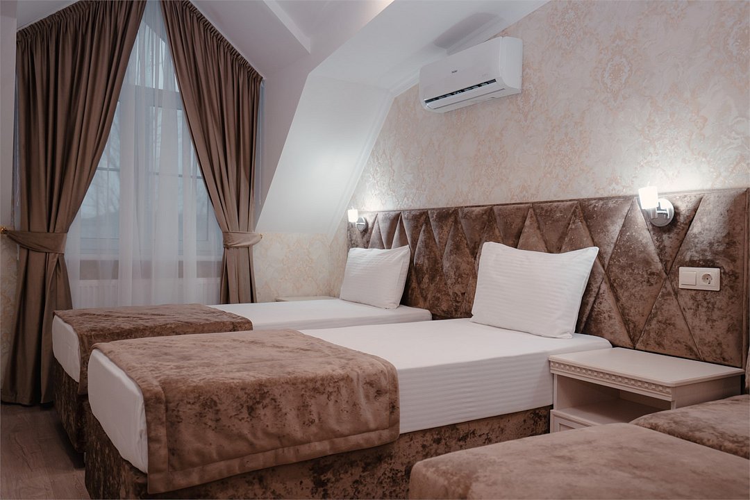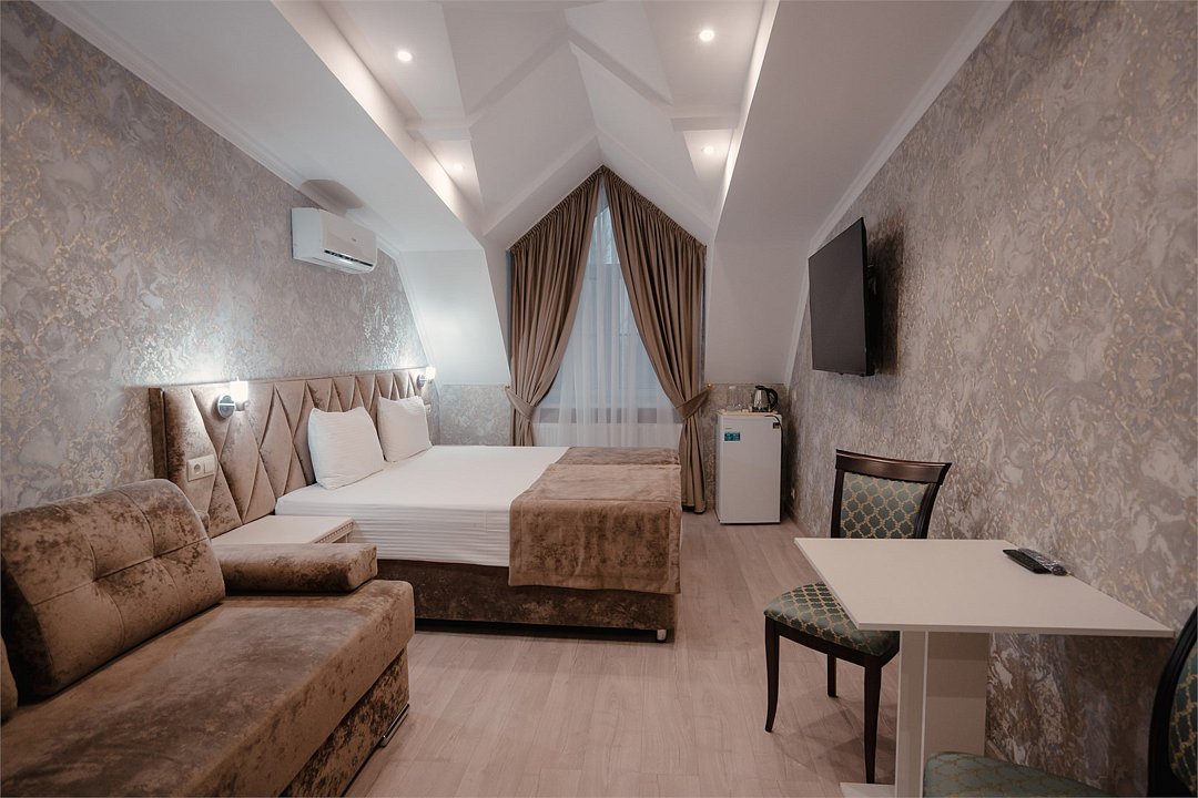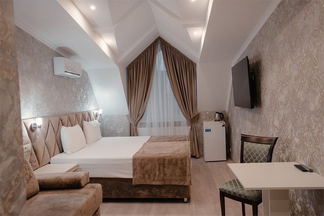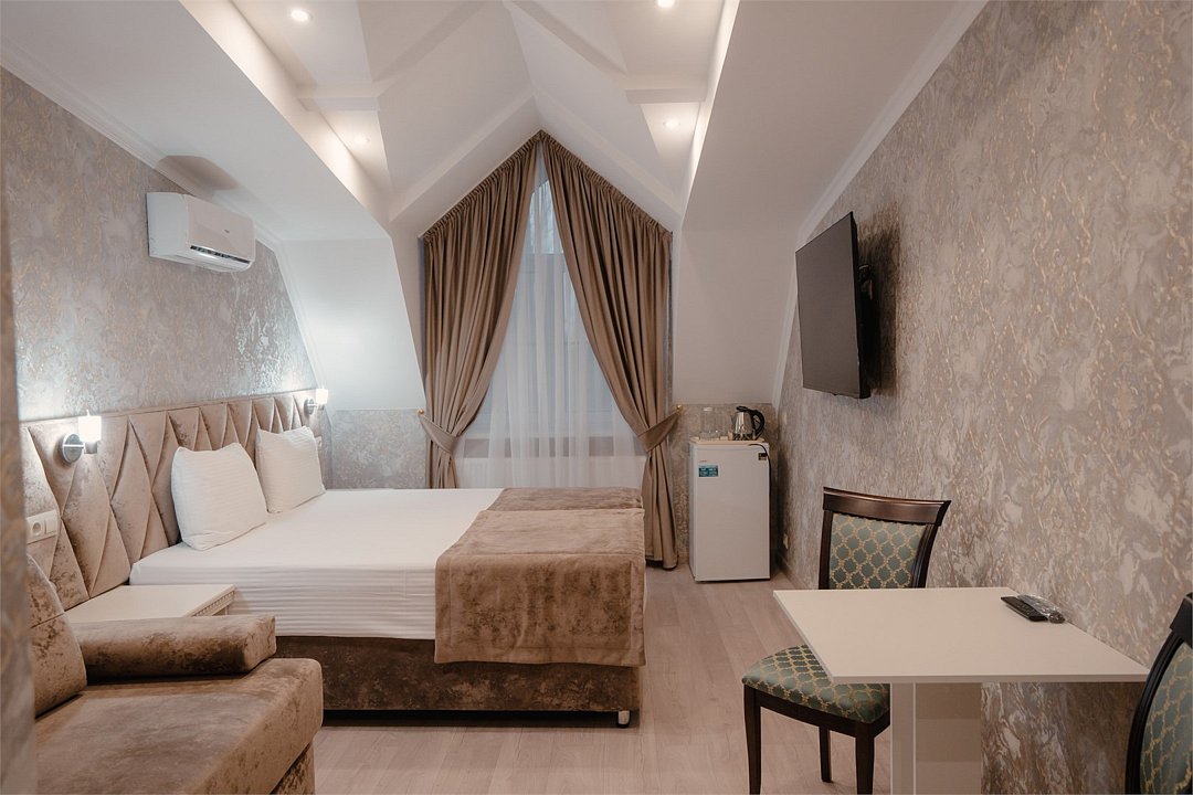 Удобные, классические, просторные, уютные однокомнатные номера категории «Комфорт» с двумя раздельными кроватями или с одной двуспальной , которые специально созданы для гостей, предпочитающих функциональность, оснащены всем необходимым для совмещения комфортного отдыха с работой.Услуги и удобства