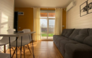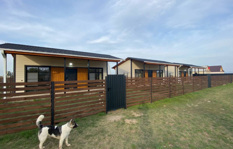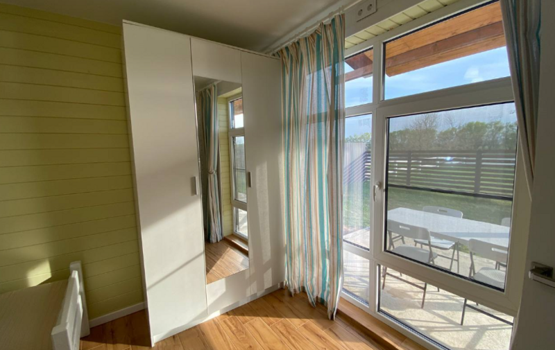 На территории находятся уютные домики, каждый из которых обладает собственным местом для парковки автомобиля (всегда рядом с вашим жилищем), огороженным двором, верандой под навесом, садовой мебелью, а также морозильной камерой на 140 литров.