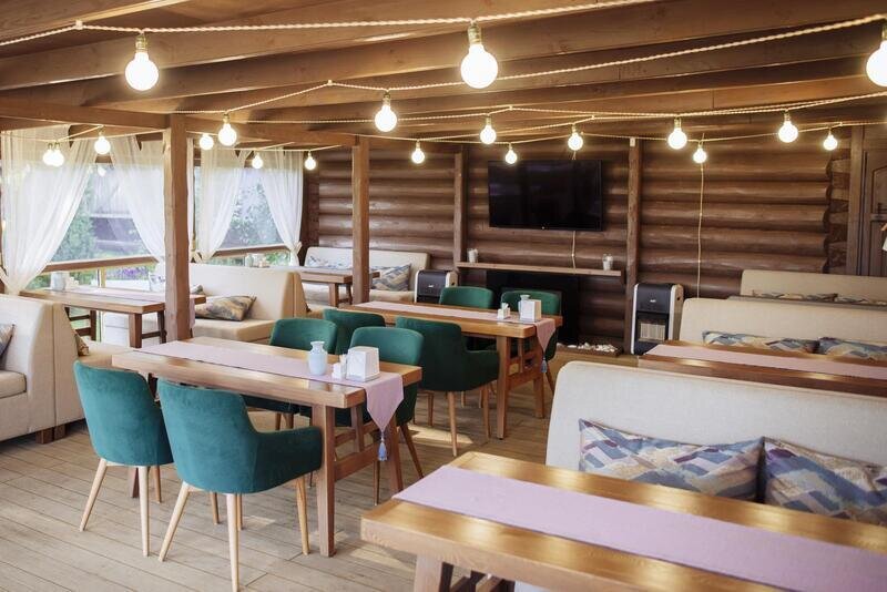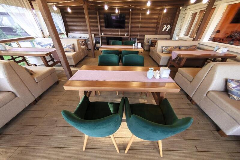 Для отдыха на улице есть деревянные беседки, откуда можно насладиться потрясающими красотами природы. Местное кафе обрадует своим интересным и богатым выбором блюд и напитков. На случай торжеств есть банкетный зал. Из развлечений: