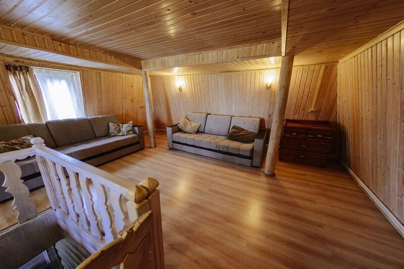 Двухэтажный коттедж с удобствами внутри . Спальные места - 1 эт. двуспальный раскладной диван, 2 эт. четыре односпальные кровати. Круглогодичное электроотопление , придомовая мангальная зона . Включены в стоимость охраняемая парковка 3-х автомобилей и завтрак на выбор до 6-ти человек.