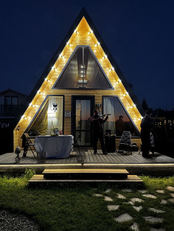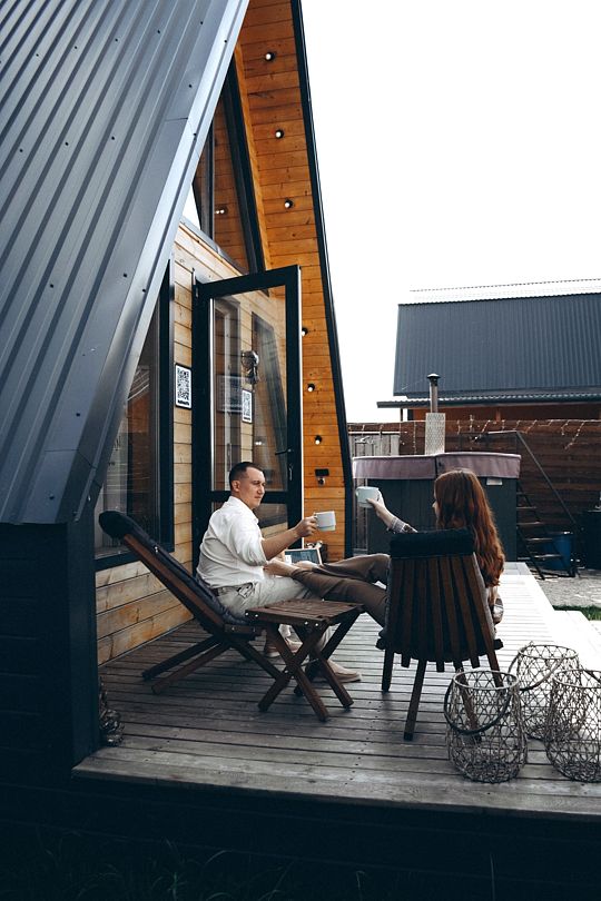 - В А-фреймах разрешено только с маленькими животными за дополнительную плату и по предварительному согласованию с администрацией глэмпинга. В коттедже проживание с животными запрещено.