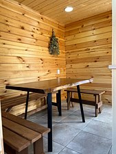 Баня 5000 ₽ / 3 часа, далее 1000 ₽/час.