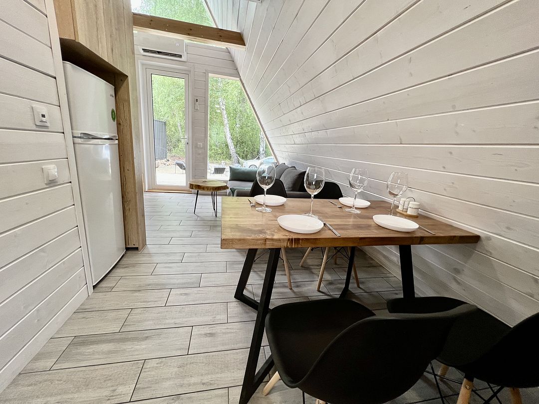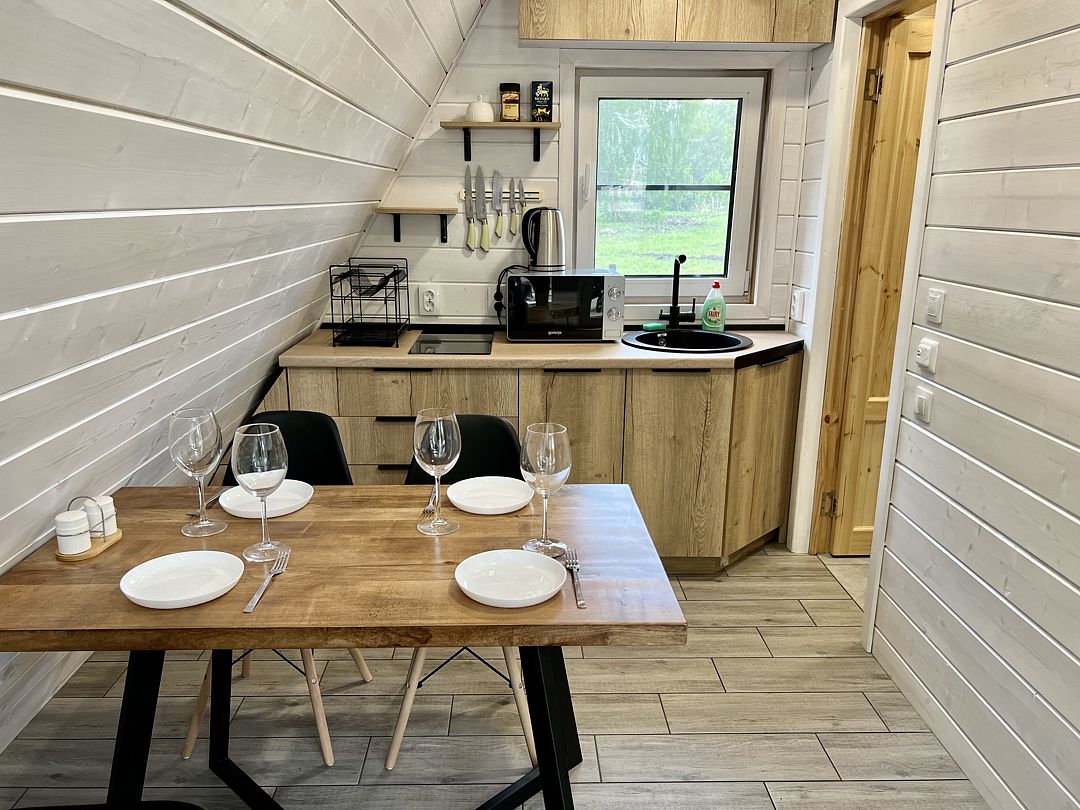 Во всех домах вас ждёт удобная мебель, располагающий к отдыху интерьер, много света, техника, и особая атмосфера, благодаря используемым природным материалам.