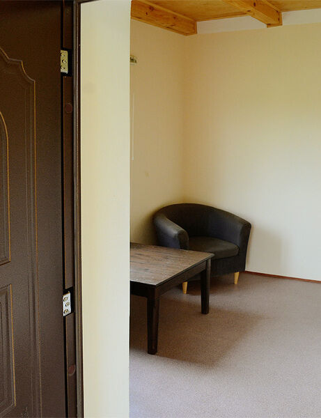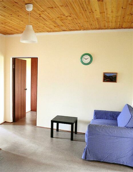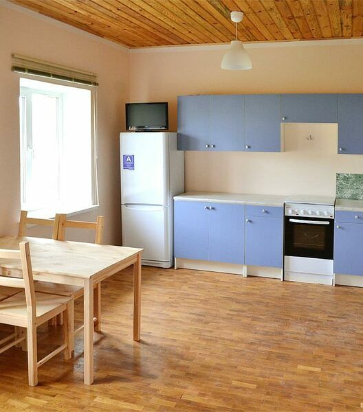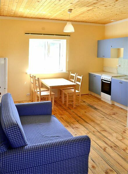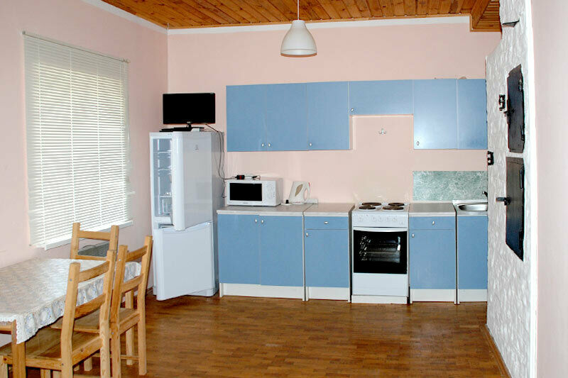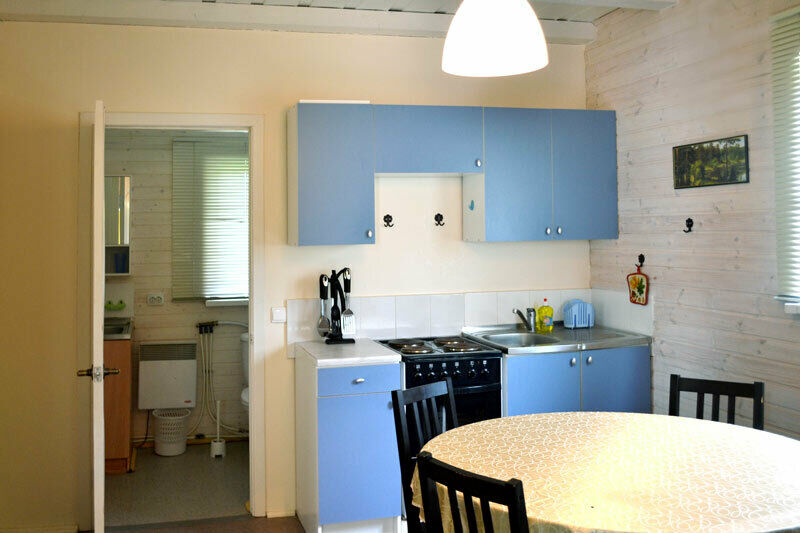 Дом расположен на второй линии в центре базы отдыха. В доме имеется 2 односпальные кровати, 1 двухспальная кровать и 1 двухместный диван.