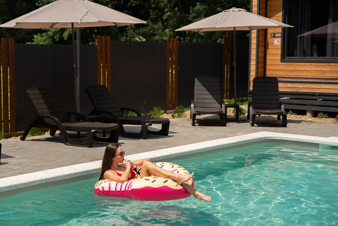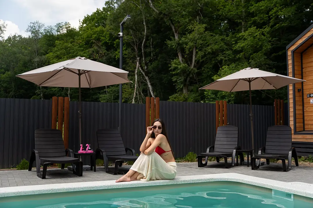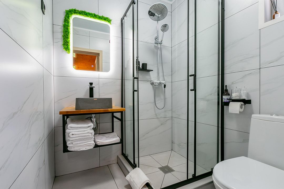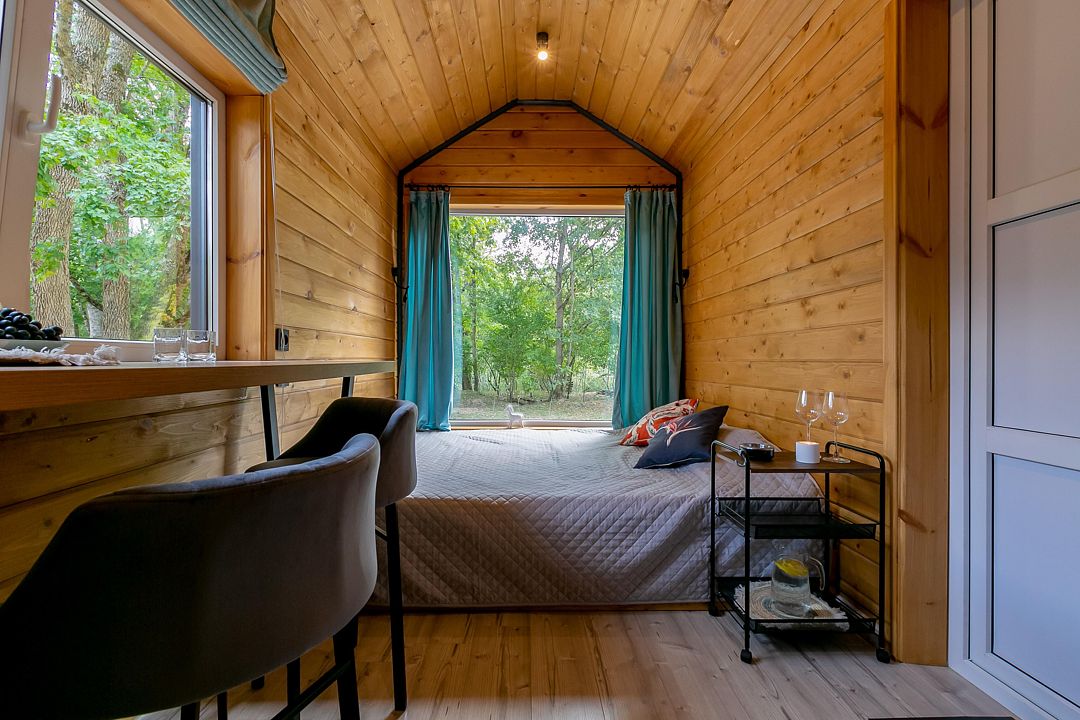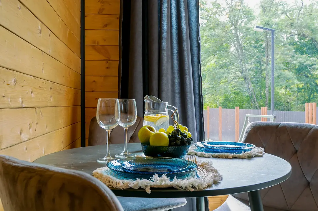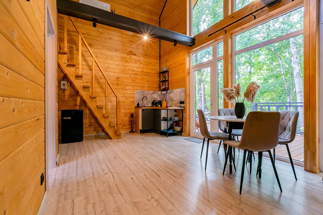Экологичные домики из натуральных материалов органично вписаны в ландшафт, создавая ощущение полной гармонии с окружающим лесом и горной рекой. Внутри — продуманный до мелочей интерьер со всем необходимым для комфортного проживания.