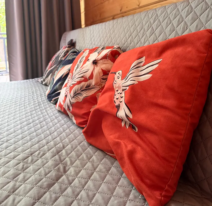 - две двуспальные кровати (1 кровать в изолированной комнате, 1 кровать на мансарде);
