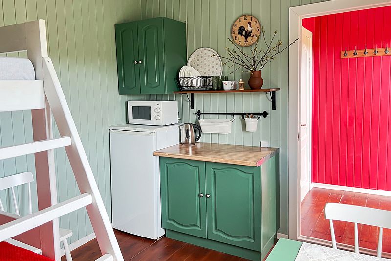 Отдельные Домики (2+1) имеют оборудованную кухню, на которой вы сможете приготовить ваши любимые блюда самостоятельно. Также, в Усадьбе имеется оборудование для приготовления мяса или рыбы на гриле.