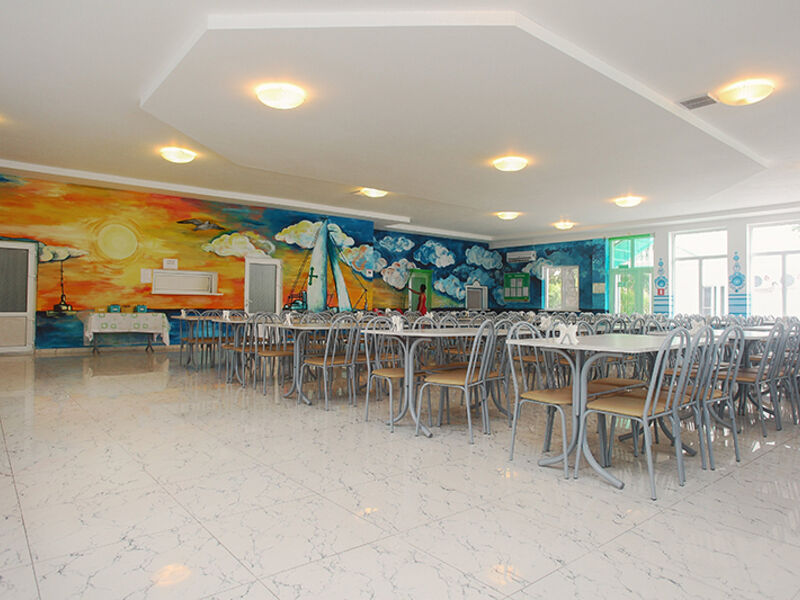 Питание трехразовое комплексное. Гости получают его в летнем кафе и столовой.