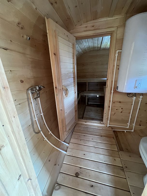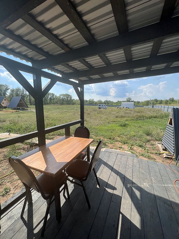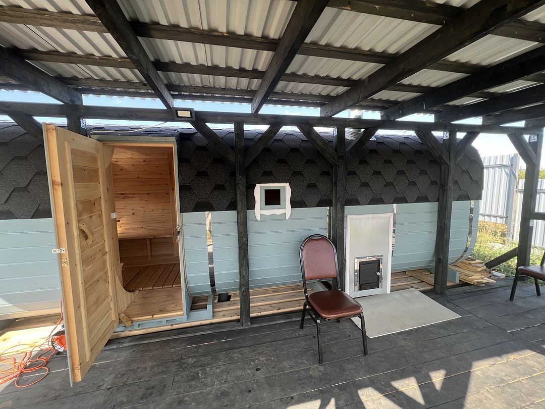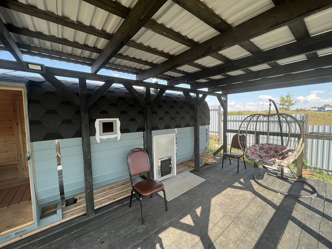 Ароматная баня, выполненная из сибирского кедра, с большой террасой для комфортного отдыха.