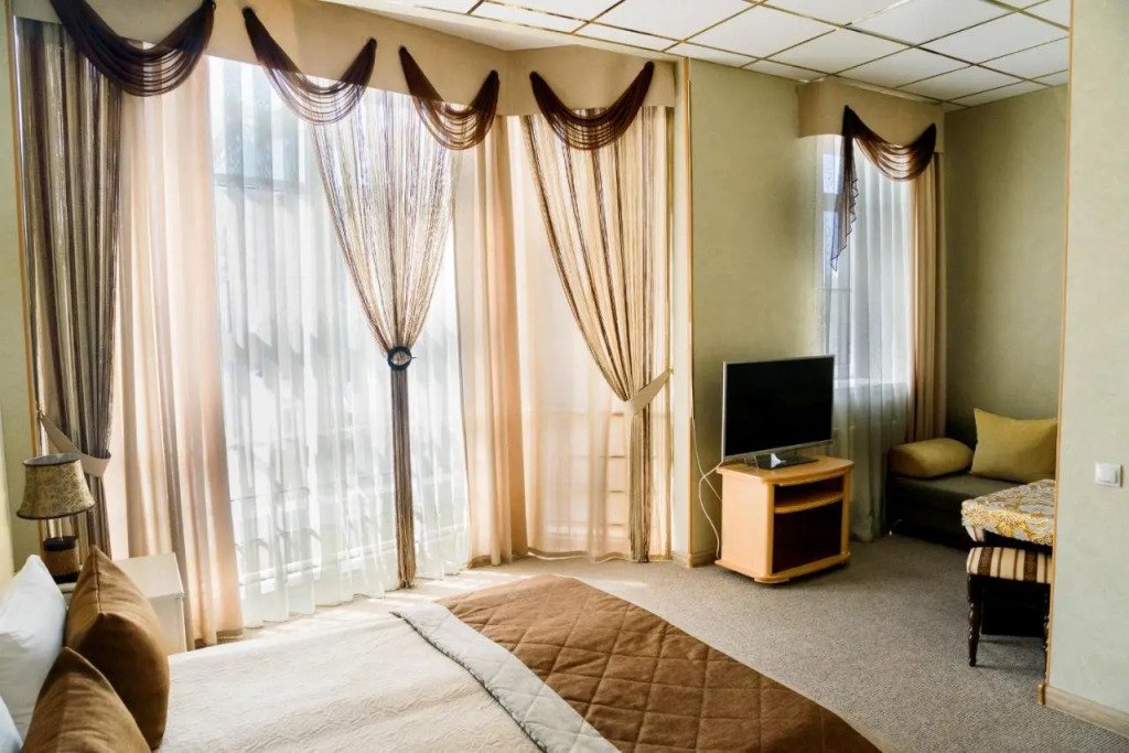 В номере вы найдёте телевизор и халат. Перечисленные услуги есть не во всех номерах.