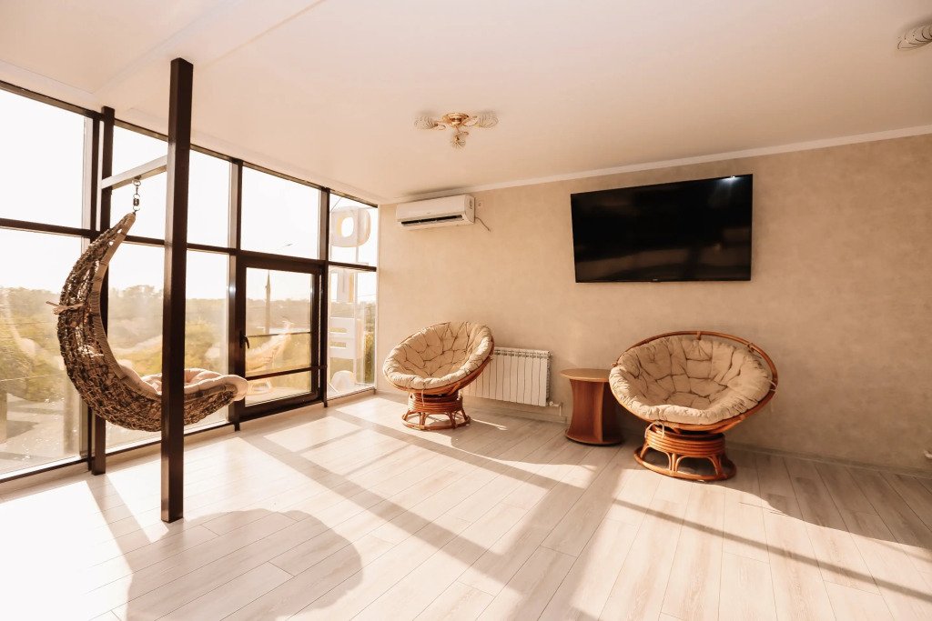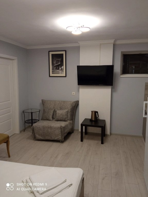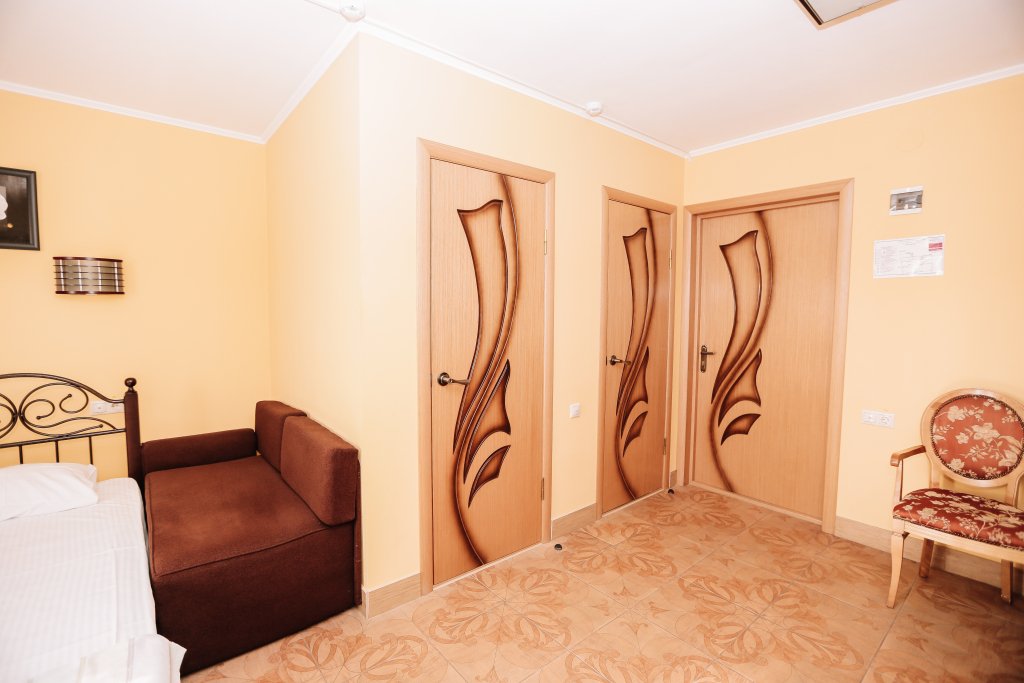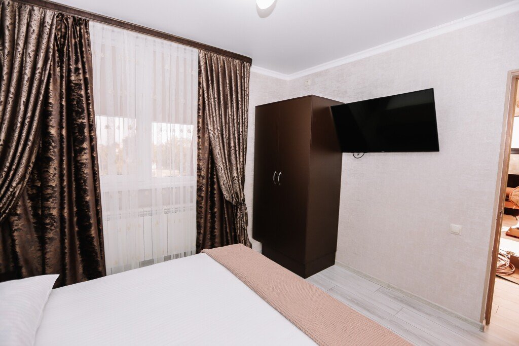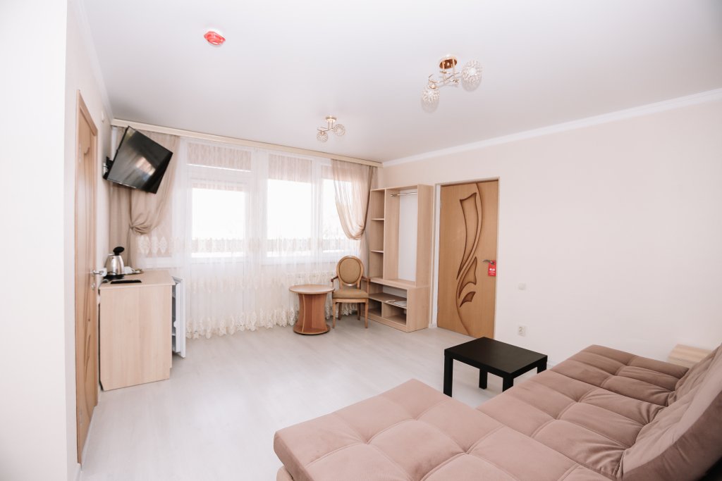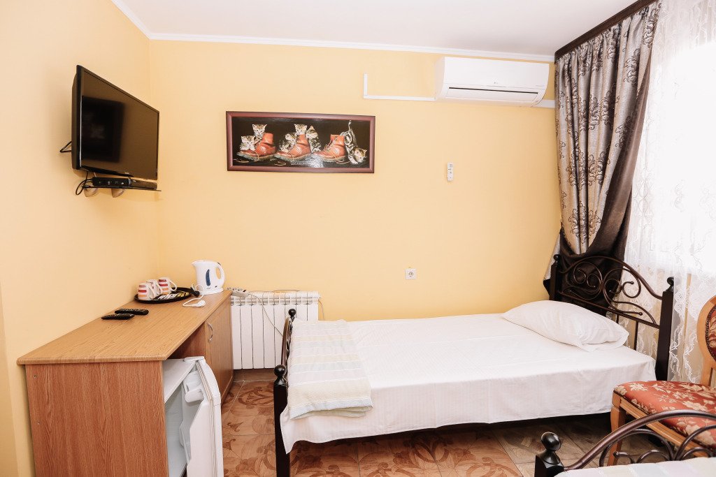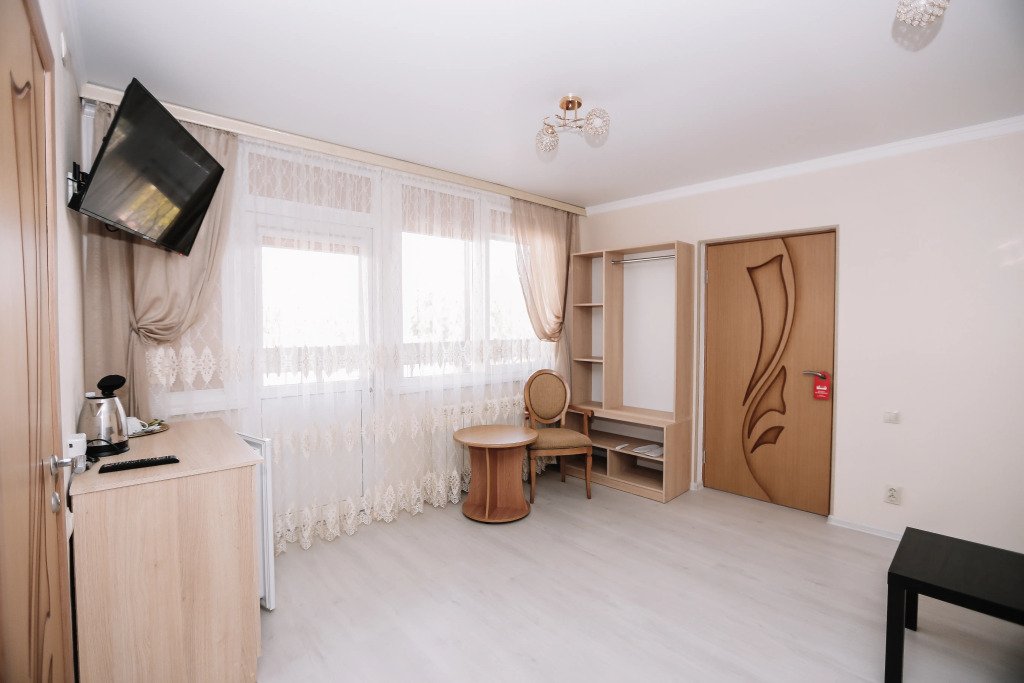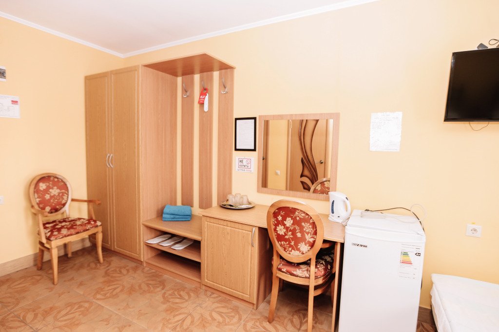 В номере вы найдёте телевизор. Оснащение зависит от выбранной категории номера.
