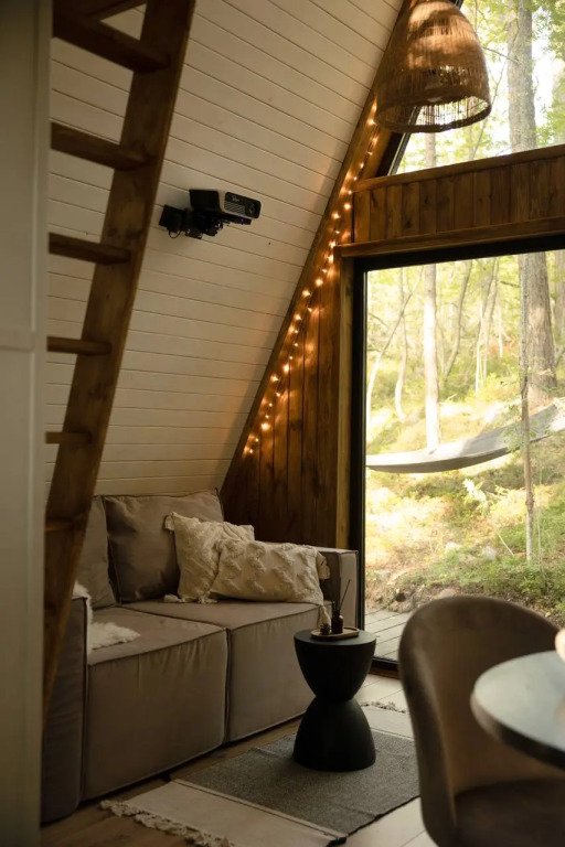 Двухместный коттедж с красивым видом из окна двуспальная кровать