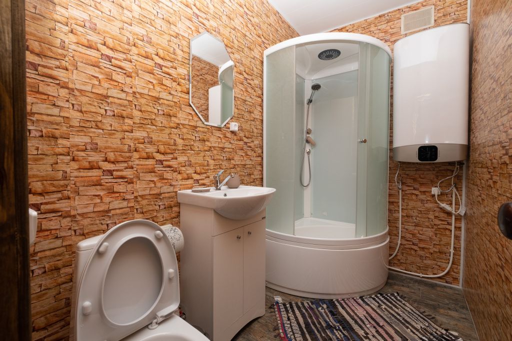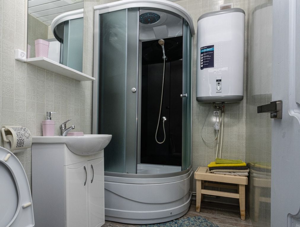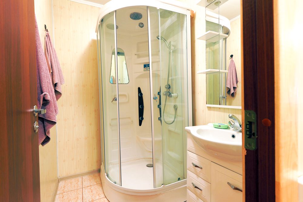 - санузел и душевая кабина раздельно, пол с подогревом.