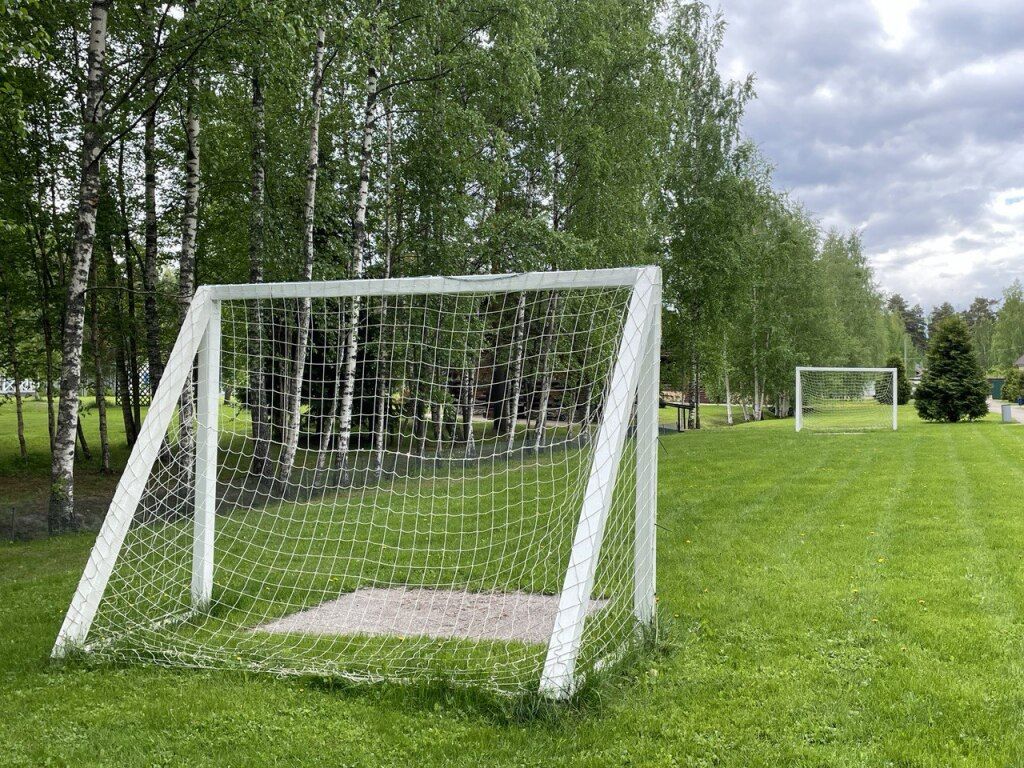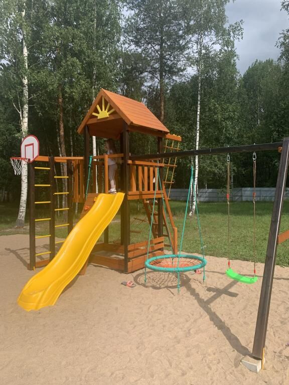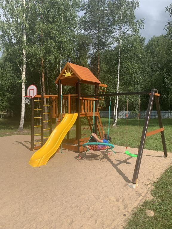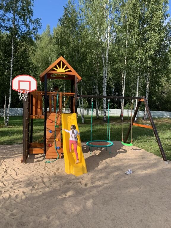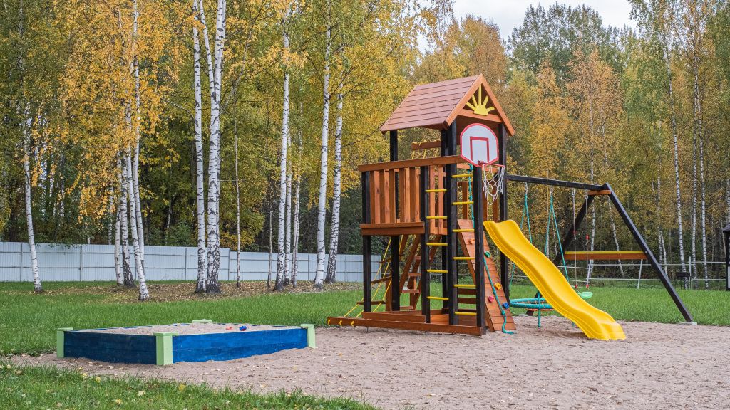 Для маленьких гостей базы оборудована детская площадка с горками и качелями.