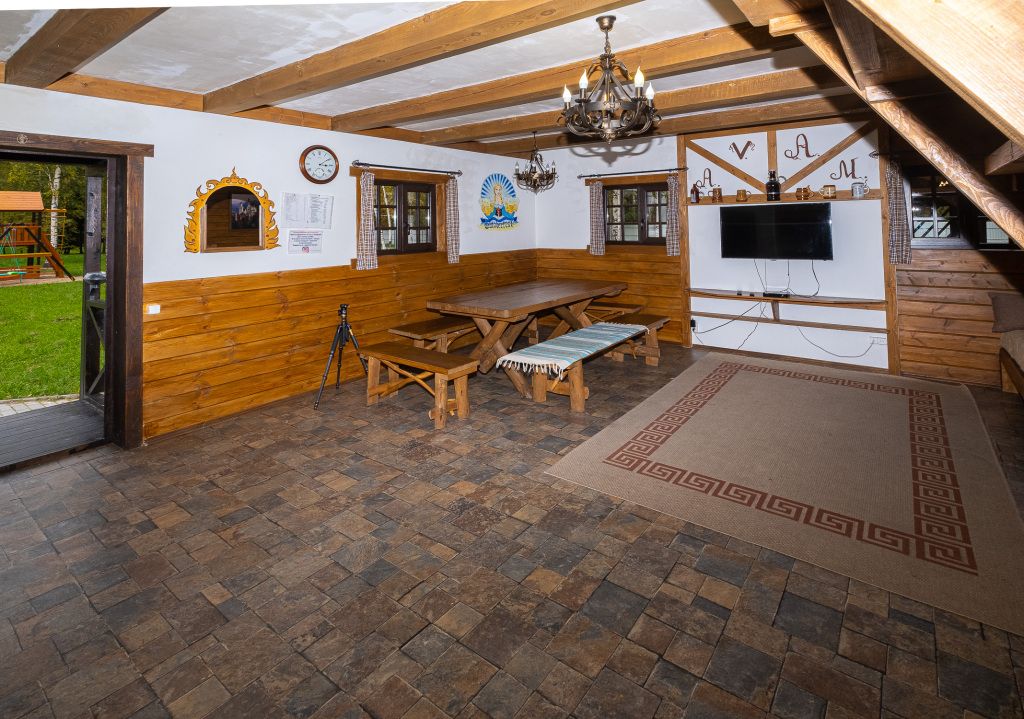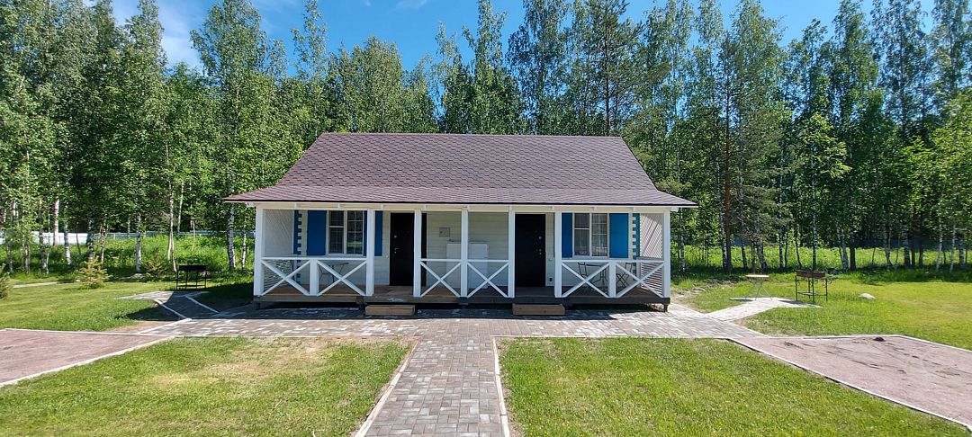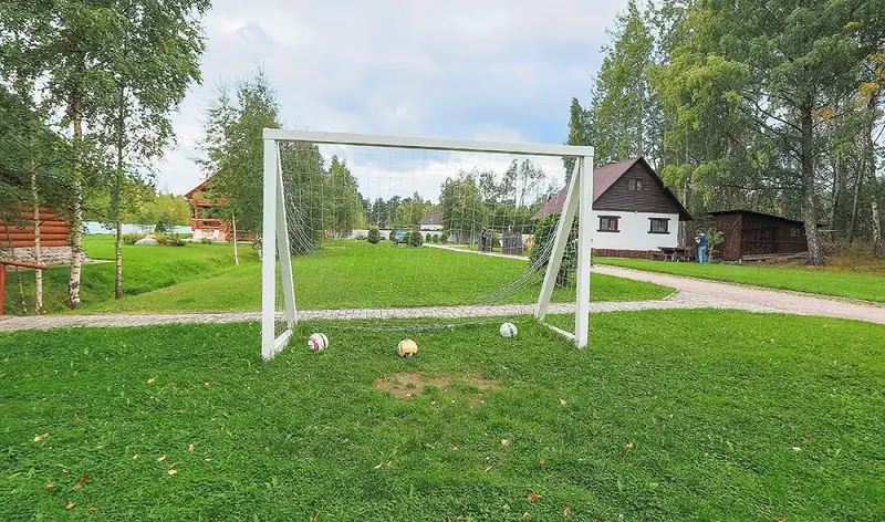 Ухоженная территория, с газоном, дорожками для прогулок, детская площадка, много развлечений, активный отдых, русская баня на дровах, закрытая беседка с камином, телевизором и караоке, возможность, прямо на территории, сесть в лодку и покататься или порыбачить на озере. Могут Вам предложить блюда из русской печи.