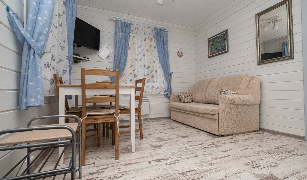 НедостаткиНас не предупредили о том, что на базе нет питьевой воды, она солёная для готовки годится, а вот чай-кофе нет. Надо заменить ручки на внутренних дверях, чтобы они не щелкили, и сделать щащелку в санузел, она не закрывается, в комнату дверь закрывается с трудом и не хватает каких-то ночников, верхний свет очень яркий, особенно при незакрывающейся двери в комнату. А диван раскладывается впритык к столу, что очень не удобно при расклалывании. Не смотря не эти недочёты, сыну с мужем понравилось, сказали ещё приедут