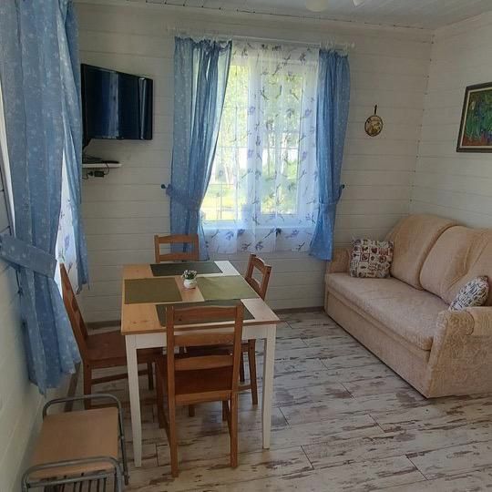 Семейный отдыхДостоинстваОтдыхали вместе с внуками 8 и 6 лет.Понравилось всем. Жили в правой половине грузинского домика, он ближе всех домов к въезду. Чистый, посуда чистая. Перед применением даже перемывать не надо. Спички, перец, соль- все было, хотя мы все с собой привезли. В душевой теплый пол. На улице возле мангала - стол, что очень удобно при готовке. Территория чистая, ухоженная. Играли в настольный теннис, бадминтон- все бесплатно. С причалов удили рыбу, клев средний, но на три сковороды наловили. Ловить тяжело, много водорослей и кувшинок. Заказывали борщ- обалденный!!! Вкусный! 3 литра, но ели мы его два дня. Внимание! Берите с собой достаточно хлеба. В магазине что рядом находится, его не купить, сразу утром раскупают, так как заказ небольшой. Это к сведению. Да и холодильник в номере большой, двухкамерный. Все умещается.