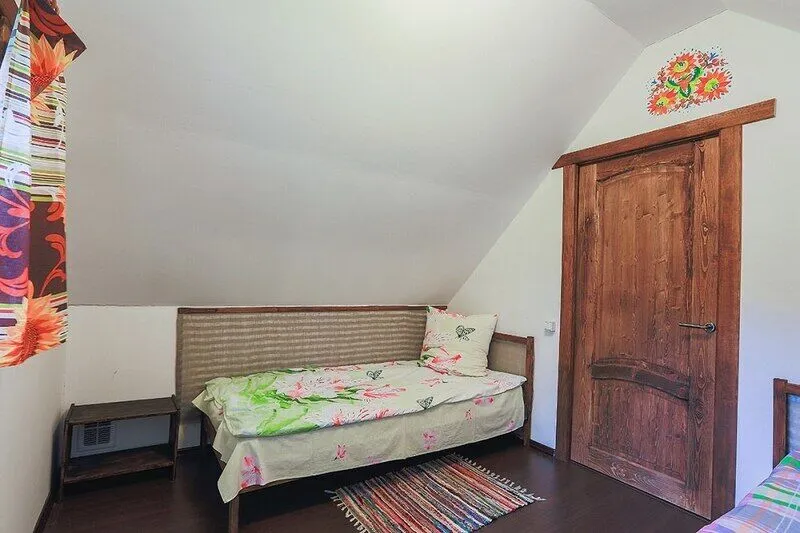 Двухэтажный коттедж в молдавском стиле. Внутри большая печь, камин на дровах, предметы старинного деревенского быта, мебель из дерева. Терраса. перед домом мангал.