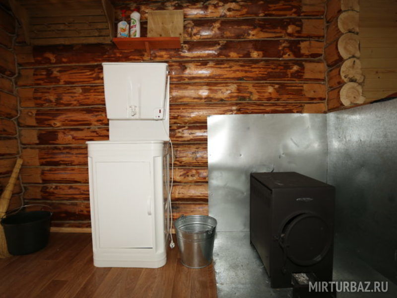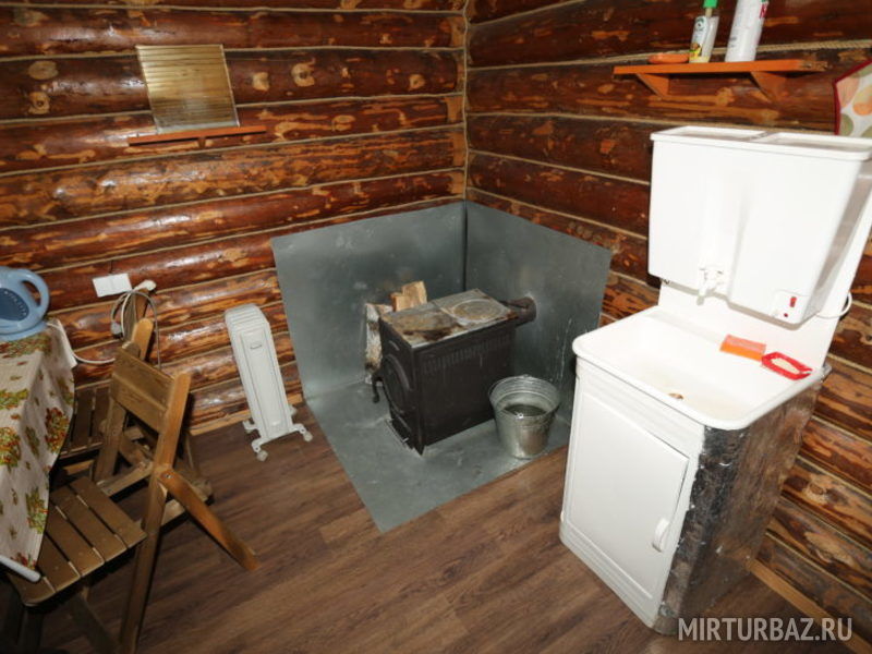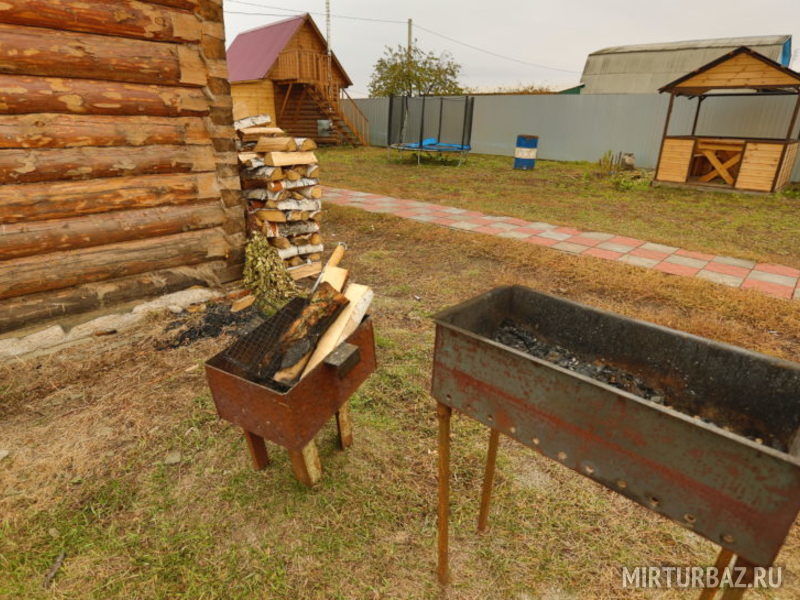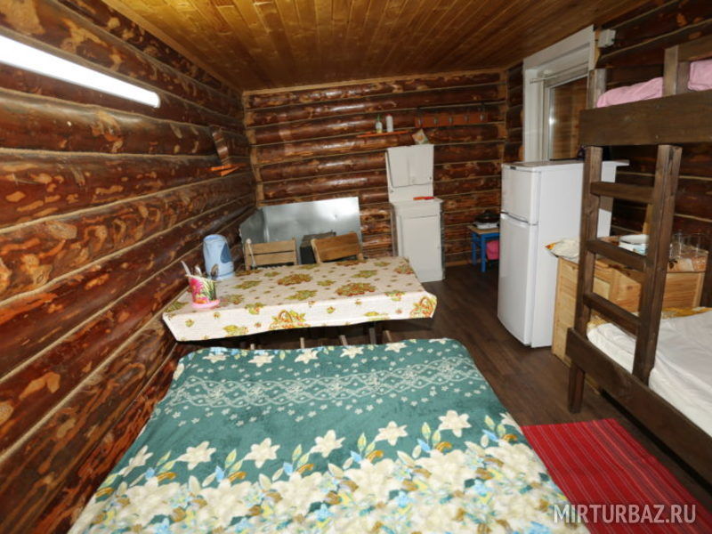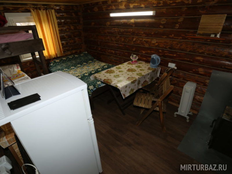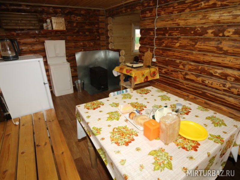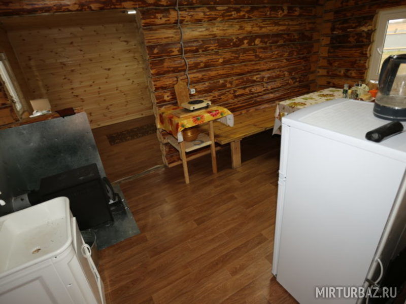 1 этаж: печь на дровах, стол, лавки, полуторная и двухъярусная кровати, электричество, умывальник, холодильник, плита, посуда, вентилятор. Рядом веранда-беседка.