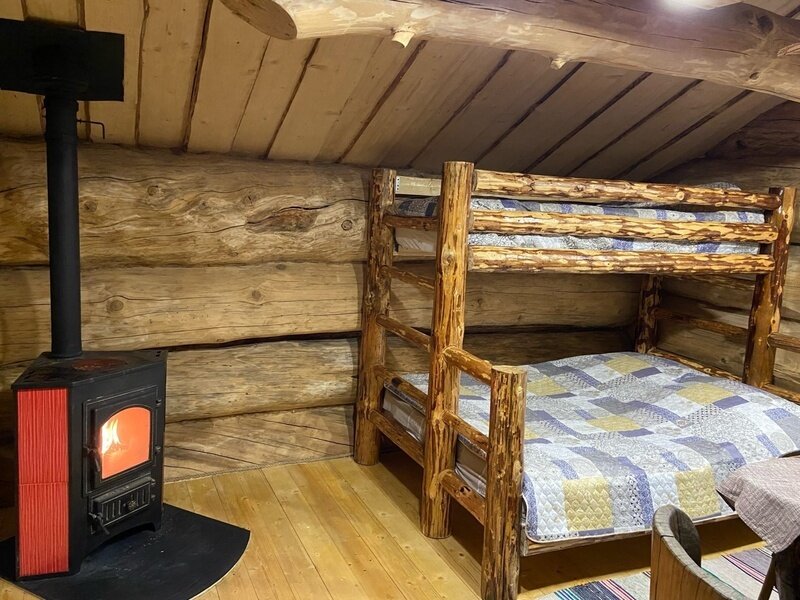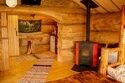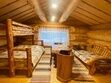 1 двухъярусная кровать (верхний ярус 1спальная,нижний ярус 2х спальная), + диван 1 спальный+ доп. раскладная кровать 1 спальн, теплый туалет и душ,камин