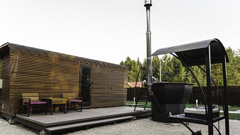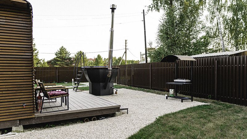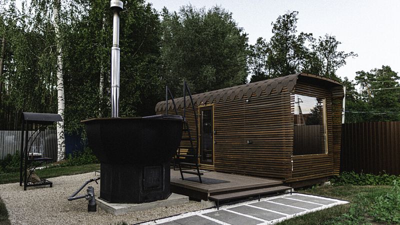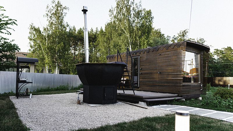 В глэмпинге «РослаТрава» рядом с каждым домиком находится собственный банный чан, предлагающий полное расслабление.