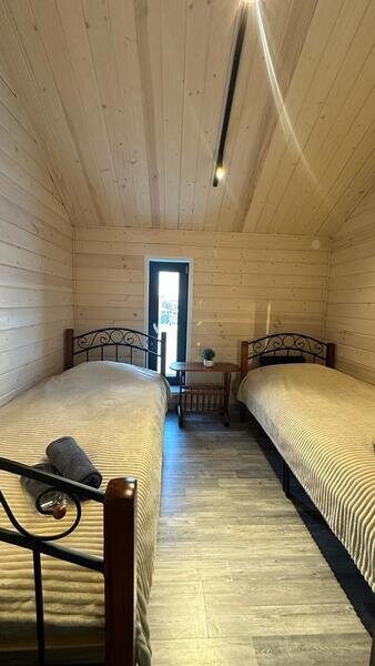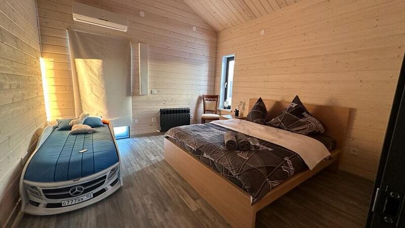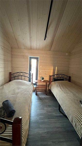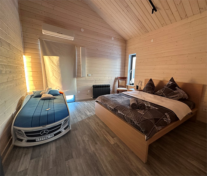 2 этаж: 4 комнаты с двухспальными кроватями, мини-кухня с техникой и посудой, душ.