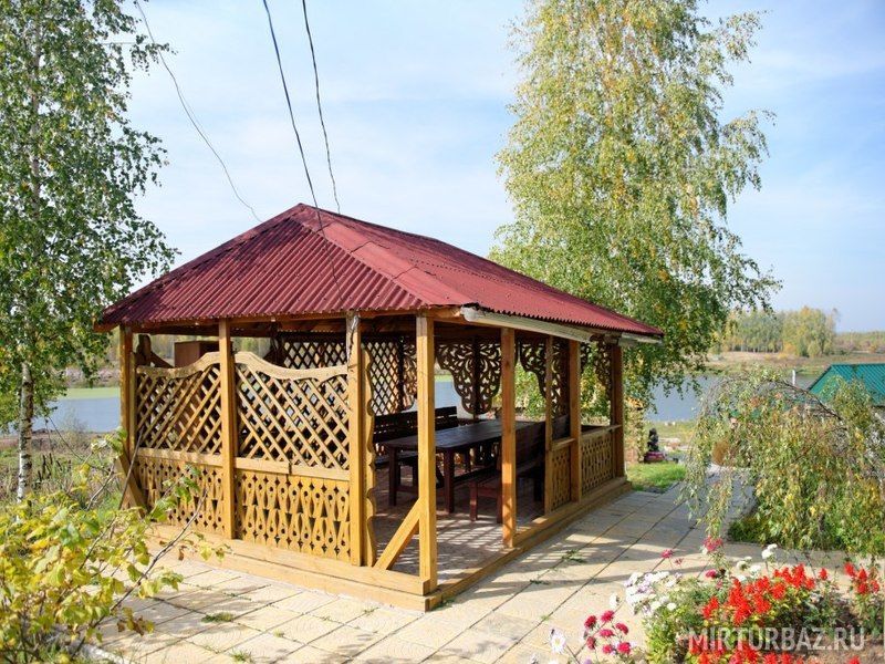 Небольшая открытая беседка с видом на озеро. Вместимость беседки до 15 человек. Самовар и большой стол способствуют приятному общению. Вместимость 10-15 человек.