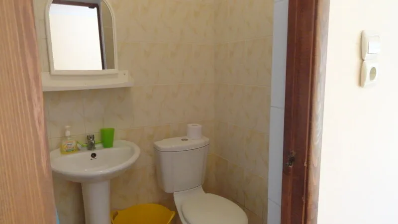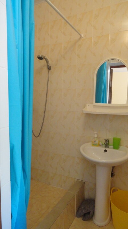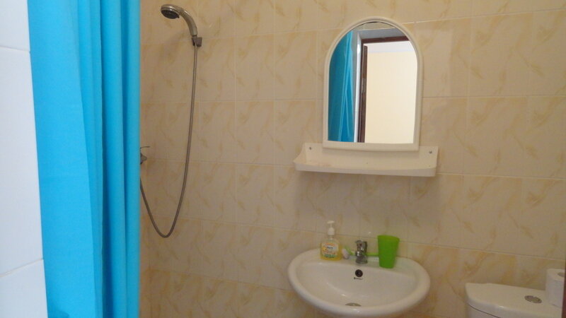 В каждом номере есть сан.узел , площадью 3,4 кв.м.(раковина, унитаз и душ),горячая и холодная вода 24 часа в сутки. Каждый номер имеет «личную» территорию со столом и стульями. Оснащение номеров: 2-х спальная кровать и две односпальные, прикроватные тумбочки, шифоньер, телевизор, холодильник и кондиционер.