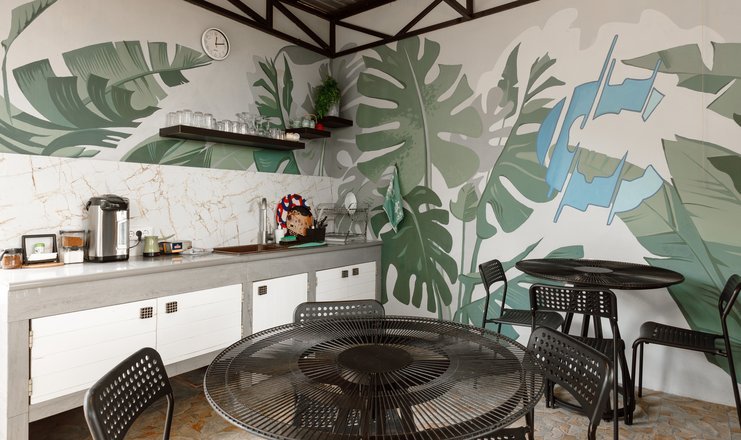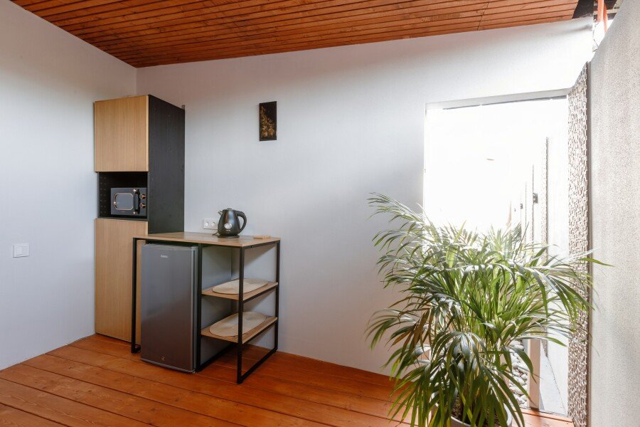 Утюг, фен(по требованию), общая кухня, как в хостеле, можно готовить самому, что прекрасно, для семейного отдыха и стиралка(за доп.плату).