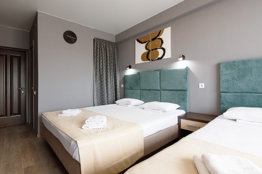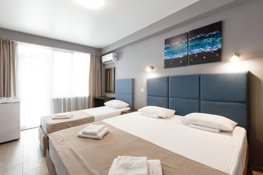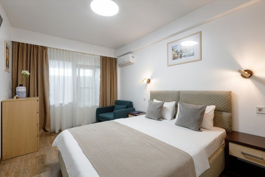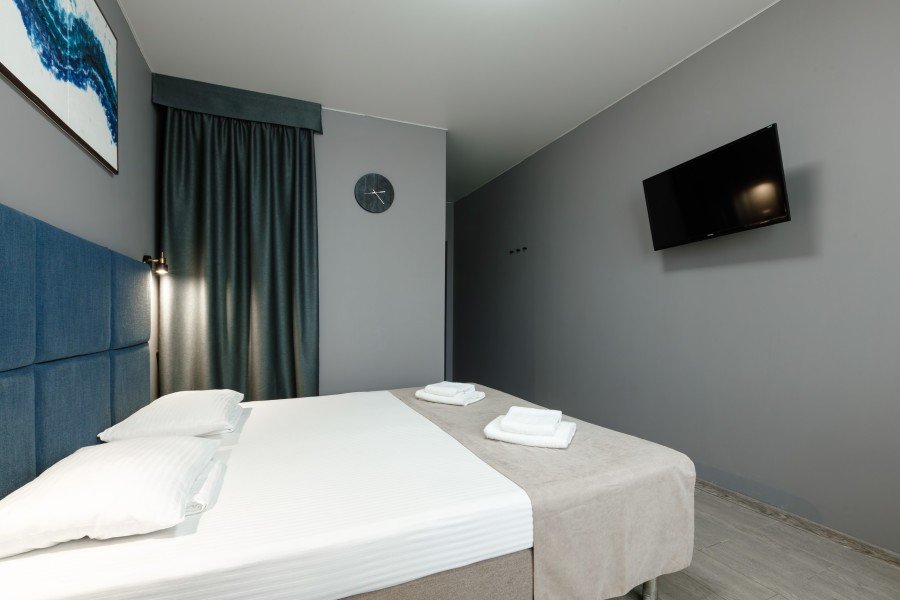 Для проживания в комплексе подготовлены комфортные номера с современным дизайном, в каждом есть телевизор с плоским экраном, ванная комната, удобные кровати со специальными матрасами. Отдельные апартаменты имеют выход на просторный балкон или террасу.