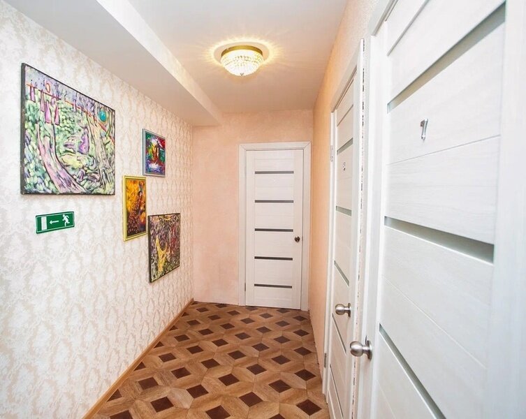 В номере: зеркало, тумба, шкаф. Холодильник общий в коридоре. Туалет и душ на этаже.