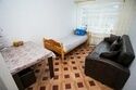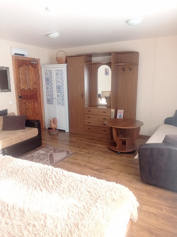 Столик, 2-х спальная кровать, 2 дивана. Один диван раскладывается. Детская кроватка по запросу. Удобства на этаже.