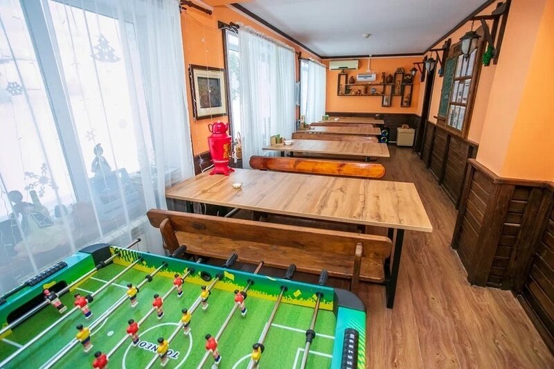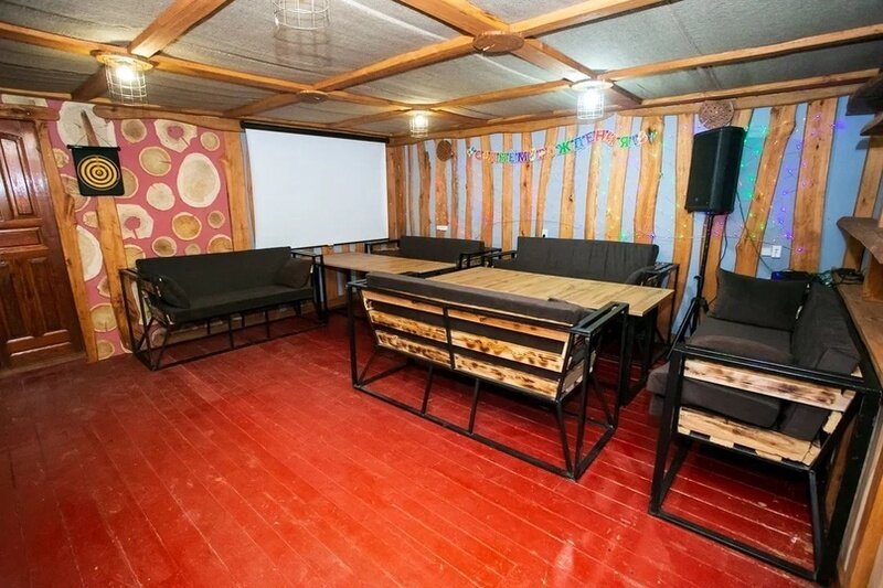 В номере: стол и два пуфа. Холодильник общий в коридоре. Туалет и душ на этаже.