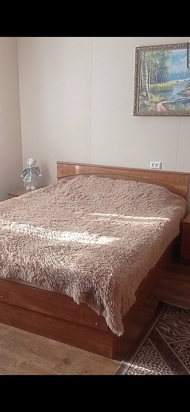 В номере кровать, шкаф, тумбочки. Удобства рядом на этаже.