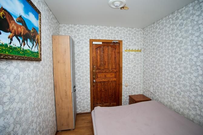 В номере: зеркало, тумба, шкаф. Холодильник общий в коридоре. Туалет и душ на этаже.