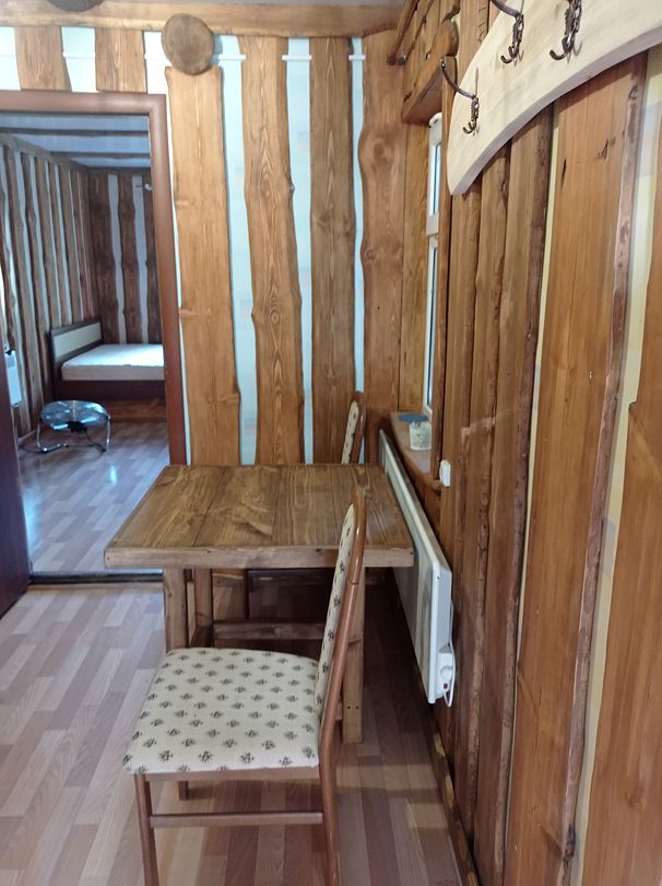 В номере: стол и два пуфа. Холодильник общий в коридоре. Туалет и душ на этаже.