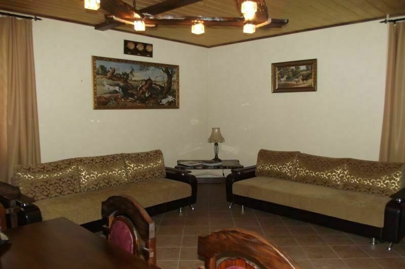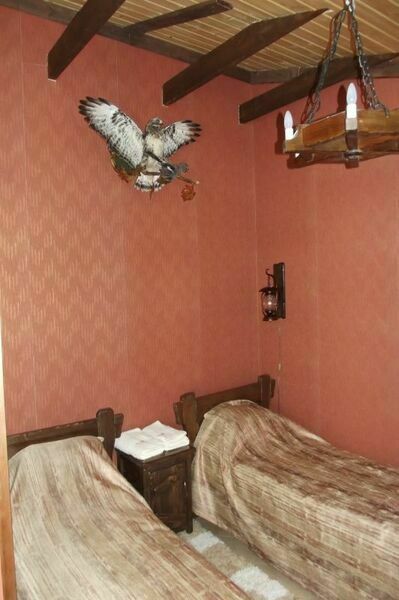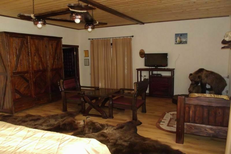 Читать полностьюОсновной зал площадью 200 м.кв., рассчитан на 50 человек. Стены ресторана украшены трофеями диких животных, добытыми в здешнем хозяйстве. Роскошный интерьер с различными атрибутами охотничьего быта, подходит как для шумных торжественных застолий, так и для тихого и уютного отдыха.В зале ресторана имеется барная стойка, где гости могут отдохнуть от городской суеты и насладиться вкусом изысканных коктейлей и разнообразными напитками, а за кружкой хорошего пива, вы сможете приятно провести время с друзьями.