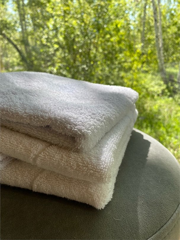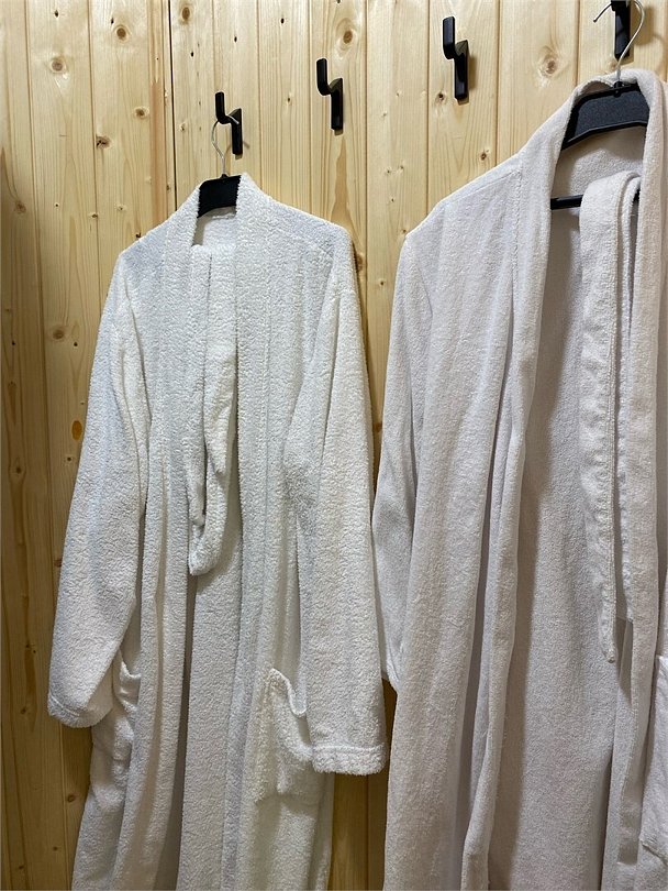 Полотенца, халаты, тапочки. Душевая и санузел в домике.