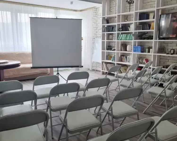 Зал оборудован всем необходимым для проведения ваших обучающих мероприятий, конференций и тренингов. Закрытое помещение, стулья на 30-40 человек, экран, проектор, флипчарт. Возможна организация кофе-брейка.