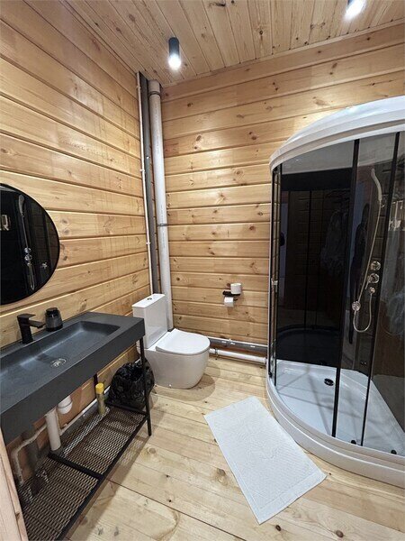 Уютный комфортабельный дом с тремя спальнями и гостиной, с совмещенным санузлом с душевой кабиной. В доме проведено газовое отопление, а на первом этаже теплые полы, поэтому в барнхаусе всегда комфортно.