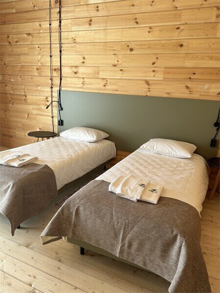 Классический номер для двух человек. Идеальное сочетание цены и возможности проживания вдвоем. Есть возможность выбора между большой двуспальной кроватью или двумя односпальными.