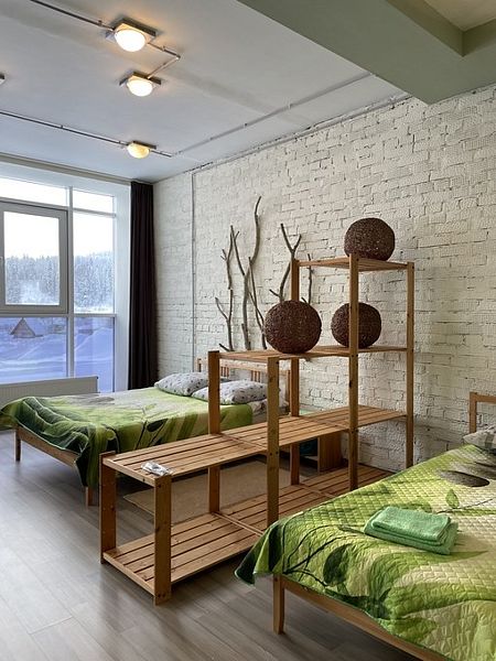 Семейный номер комфорт предназначен для размещения больших семей — идеальный выбор для веселых выходных. Предоставляется постельное белье и комплект полотенец для четырех человек.