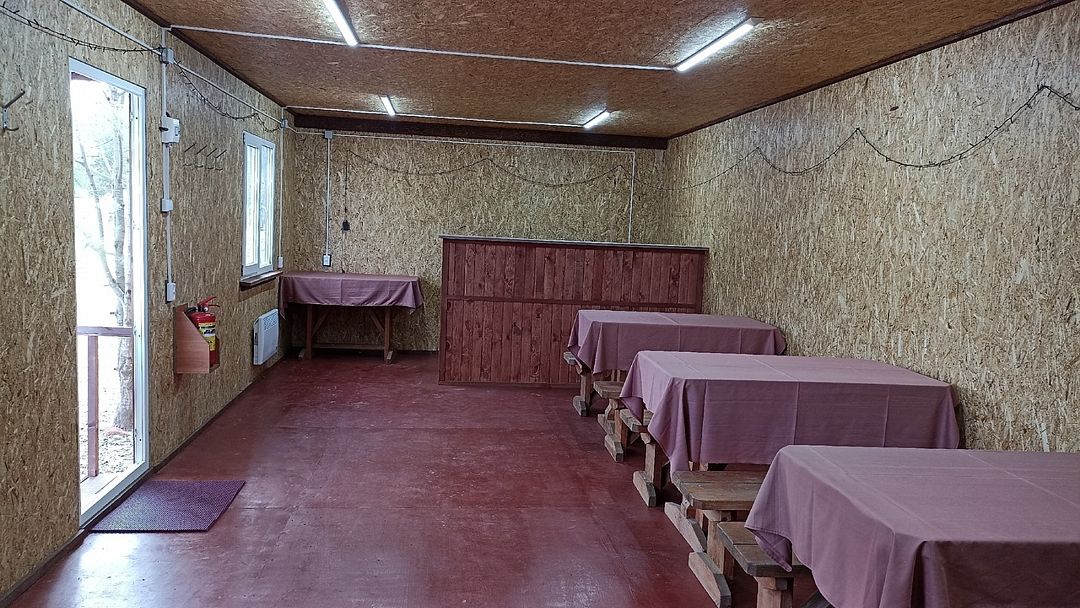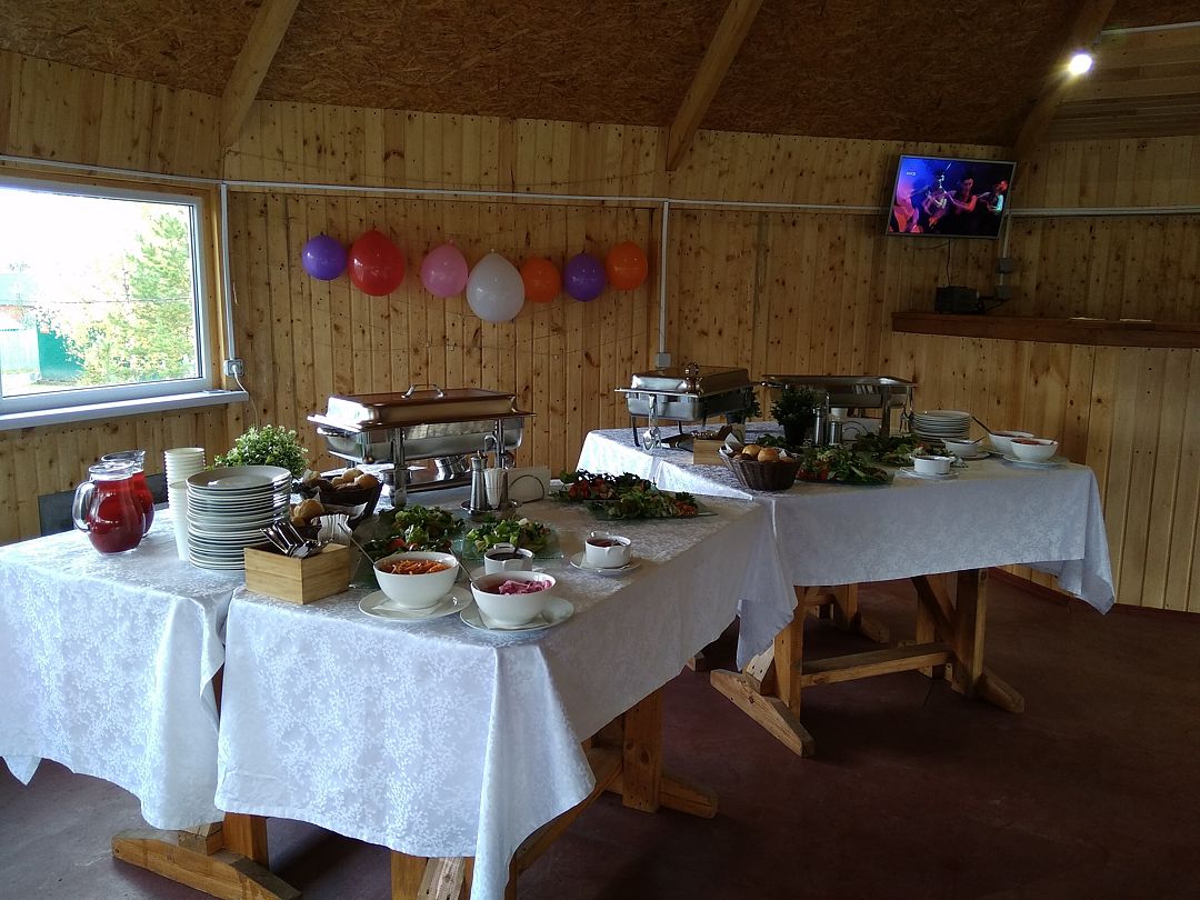 Закрытая беседка для проведения банкетов, корпоративных мероприятий или просто посиделок в дружеской компании в дождливую погоду. Вместимость до 50 человек.